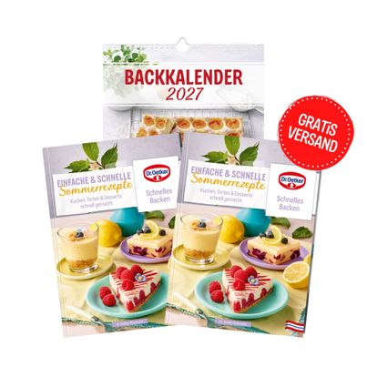 Mehr Backfreude zum Vorteilspreis: Dieses Aktions-Set kombiniert zwei Exemplare des beliebten Dr. Oetker Backkalenders 2027 mit dem neuen Rezeptbuch „Einfache & schnelle Sommerrezepte“. Freu dich auf 12 Monate voller Backinspiration sowie auf erfrischendes Tiramisu, Kuchen, Torten und Desserts für den Sommer – und profitiere dabei von einem attraktiven Preisvorteil sowie kostenlosem Versand (Ersparnis € 7,90) auf deine gesamte Bestellung.